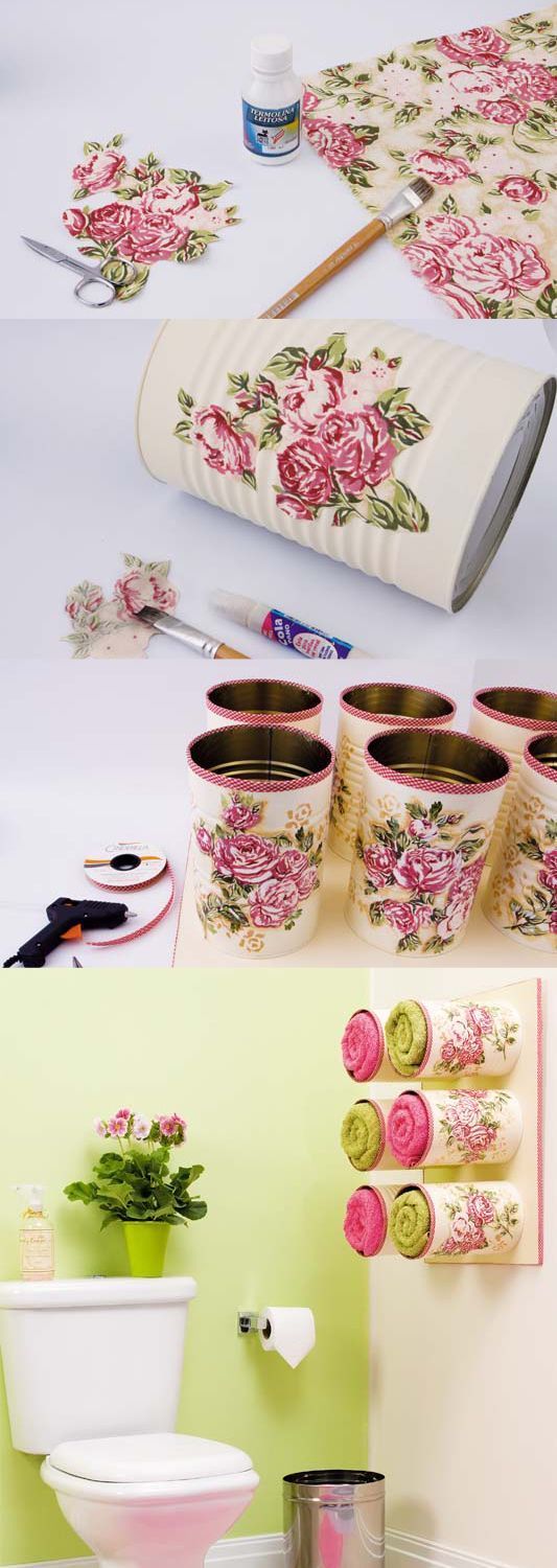 Ποιος θα το φανταζόταν οτι μπορούμε να μετατρέψουμε τα παλιά μας κονσερβοκούτια σε πραγματικά στολίδια; Μπορείτε να τα χρησιμοποιήσετε για να βάλετε εκεί τις πετσέτες του μπάνιου σας. Παρακάτω έχουμε ένα βίντεο που θα σας βοηθήσει να φτιάξετε και εσείς αυτά τα αριστουργήματα!