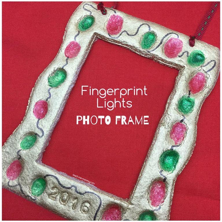10. Φτιάξτε ένα χριστουγεννιάτικο πλαίσιο με φωτάκια χρησιμοποιώντας τα δαχτυλικά αποτυπώματά σας