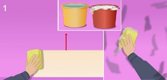 – Με ένα υγρό σφουγγάρι τρίψτε απαλά τα πιο εμφανή σημεία – πλύνετε ολόκληρο τον τοίχο