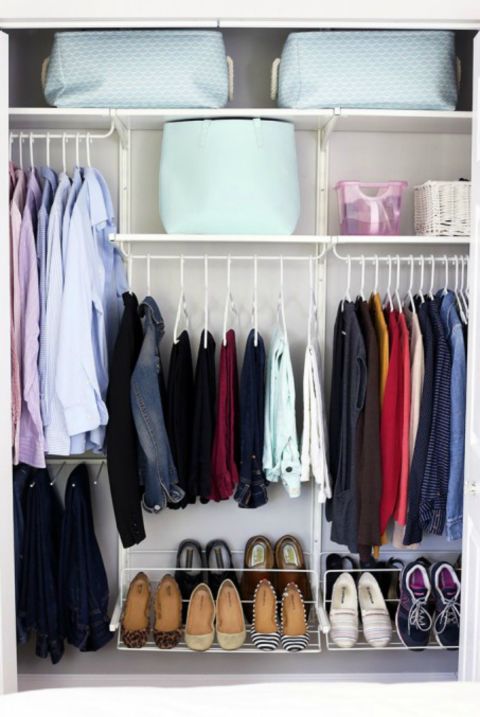 Ξεκίνα να περνάς σε κρεμάστρες πουκάμισα, παντελόνια, φορέματα, τζιν/ελαφριά μπουφάν και κρέμασέ τα στην ντουλάπα. Δίπλωσε τα μπλουζάκια και τις ελαφριές ζακέτες ή πουλοβεράκια και τοποθέτησε τα στα ράφια με τρόπο ώστε να τα βλέπεις όλα.