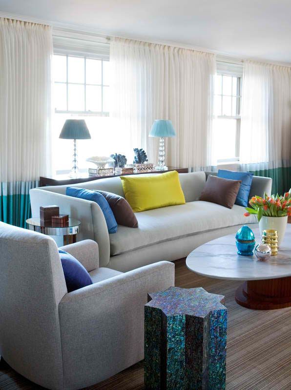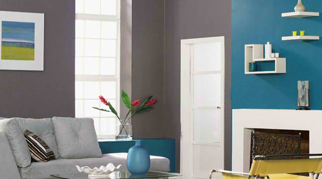Αυτό το κομψό, μοντέρνο σαλόνι ισορροπεί το ψυχρό τολμηρό μπλε με ένα ζεστό κίτρινο. Τα φωτεινά χρώματα συνοδεύονται όμορφα από την απλή επίπλωση και διακόσμηση, τις λευκές λεπτομέρειες και την προσθήκη ενός ουδέτερου γκρί. Για να προσθέσει αρχιτεκτονικό ενδιαφέρον, ο Behr έχει ζωγραφίσει τις λεπτομέρειες αυτού του δωματίου για να ξεχωρίζουν – όπως το τζάκι και την προεξοχή στο πίσω τοίχο – και βάζοντας κουρτίνες στα παράθυρα, οι οποίες δεν είναι έντονες. Εάν το δωμάτιό σας έχει ήδη μεγάλες λεπτομέρειες, το να τις βάψετε για να ξεχωρίζουν είναι ένας θαυμάσιος τρόπος για να προσθέσετε οπτικό ενδιαφέρον στο χώρο σας.