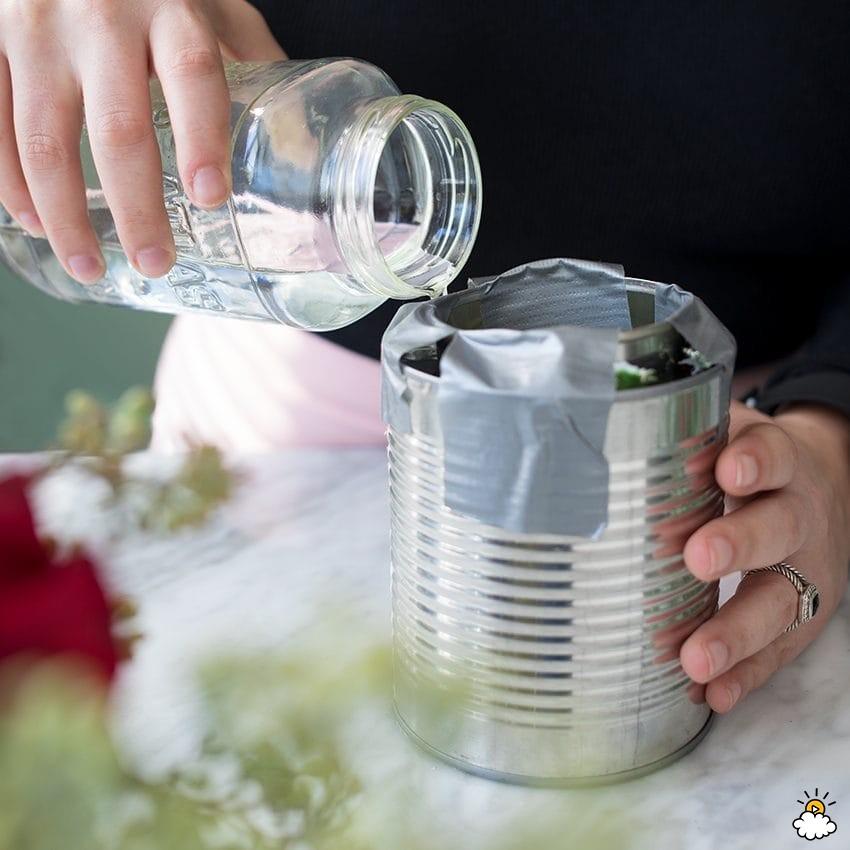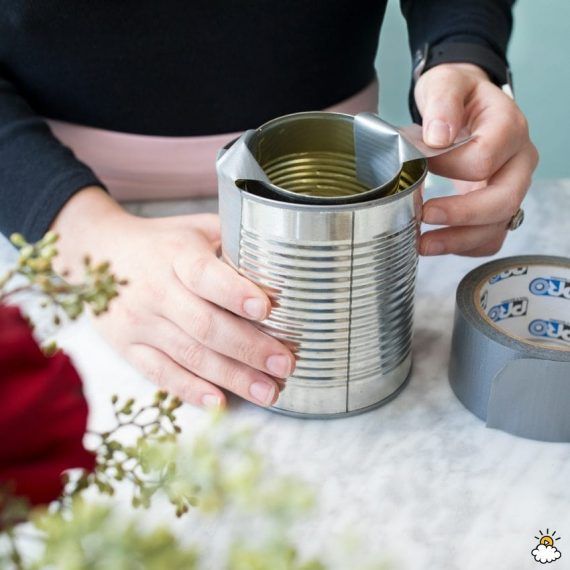 #1 Κολλήστε με την κολλητική ταινία το μικρό κονσερβοκούτι μέσα από το μεγάλο. Προσπαθήστε να τα κολλήσετε όσο καλύτερα μπορείτε