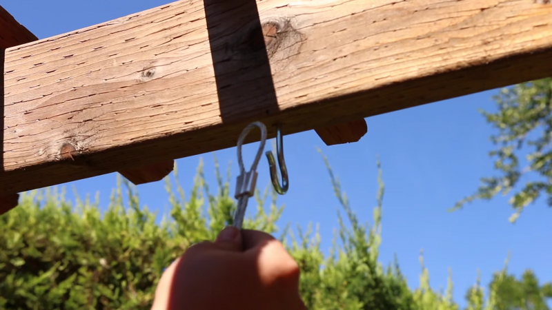 Βάλτε τους βιδωτούς γάντζους στο σημείο από όπου θα κρεμάσετε τον κήπο σας. Μπορείτε να τον τοποθετήσετε στην ταράτσα, στο ταβάνι του σπιτιού σας ή στην άκρη της σκεπής.
