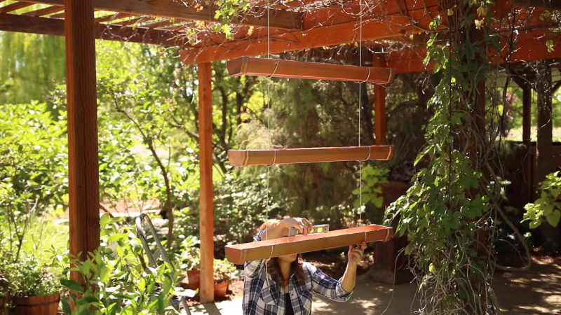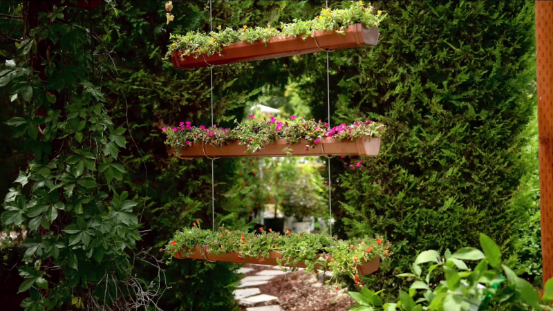 Συμβουλή: αν το κενό ανάμεσα στα λούκια είναι μικρό, τότε μπορείτε να χρησιμοποιήσετε τον κρεμαστό κήπο σαν διαχωριστικό χώρου ώστε να μην σας βλέπουν οι άλλοι.