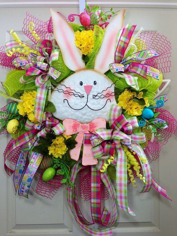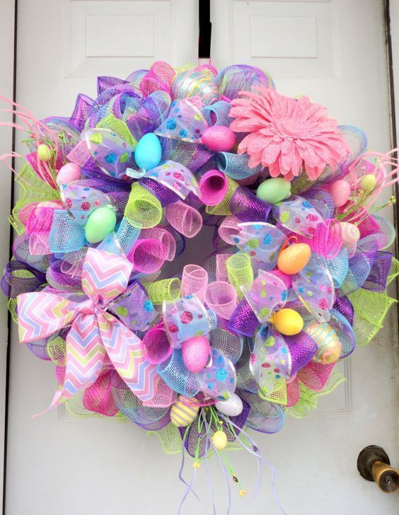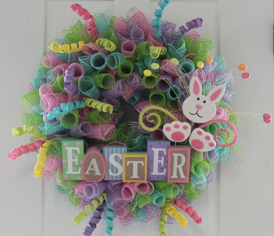 Πολύχρωμα ρέλια από υφάσματα και τούλια που έχετε στο σπίτι μπορούν συνθέσουν το πιο όμορφο στεφάνι.Κολλήστε επάνω στο στεφάνι σας αυγουλάκια και λαγουδόφατσες για πιο πασχαλινό αποτέλεσμα.