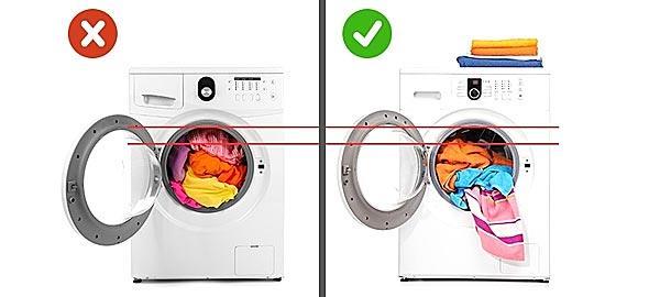 Ιδανικά, το πλυντήριο πρέπει να γεμίζει κατά 80% κι όχι εντελώς. Γεμίζοντας τον κάδο του εντελώς ή –ακόμη χειρότερα- υπερφορτώνοντάς το, μειώνετε την αποτελεσματικότητα της πλύσης. Οι ειδικοί συνιστούν ν’ αφήνετε λίγο χώρο ανεκμετάλλευτο, για να πλυθούν όλα καλύτερα αλλά και για να μειώσετε την πιθανότητα φθοράς ρούχων, σεντονιών κ.λπ.