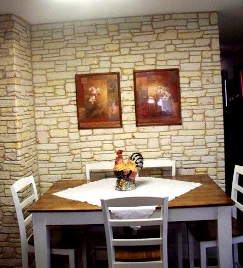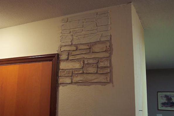 Η όψη της πέτρας είναι ρομαντική, είναι μεγαλόπρεπη και κάνει πιο ζεστή την ατμόσφαιρα. Υπάρχει λοιπόν ένας πολύ απλός τρόπος για να μετατρέψουμε έναν βαρετό τοίχο σε πέτρινο. Τα κυρίως υλικά που θα χρειαστούμε είναι δύο: ένα στένσιλ για δημιουργία του εφέ πέτρας στον τοίχο και το υλικό από το οποίο θα αποτελείται η πέτρα και θα μπορούσε να είναι τύπου γύψος, σαν αυτόν που χρησιμοποιείται για να καλυφθούν οι αρμοί ανάμεσα στα φύλλα γυψοσανίδας, ή στόκος. Το τελικό αποτέλεσμα θα φαίνεται όπως στη φωτογραφία.