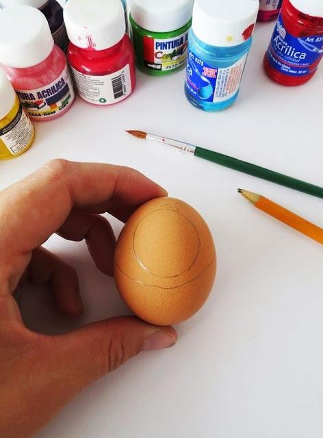 Θα χρειαστείτε βραστά σφιχτά αυγά, ένα μολύβι, ακρυλικά χρώματα και πινέλο.