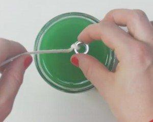 Μετά, κόψε ένα μεγάλο κομμάτι από το κορδόνι, αρκετά πιο μεγάλο από το ύψος του βάζου σου και δέσε στην άκρη του το παξιμάδι, για να μπορέσεις να το ρίξεις μέσα στο κερί και να σταθεροποιηθεί το φιτίλι. Επιπλέον, τύλιξε το φιτίλι στο ξυλάκι, για να μην πέσει μέσα και να μείνει σταθερό στο κέντρο και τοποθέτησε το ξυλάκι πάνω από το βάζο.