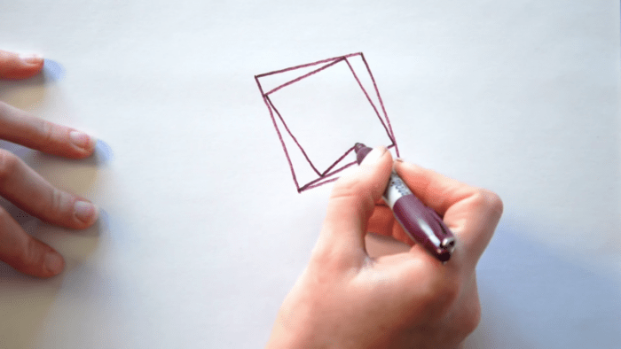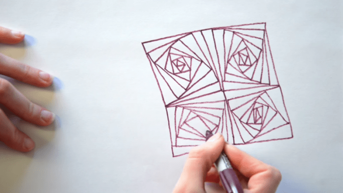Διάλεξε ένα συγκεκριμένο πρότυπο που αποτελούταν από διάφορα τετράγωνα. Ξεκίνησε με ένα απλό τετράγωνο και μετά σχεδίασε άλλο ένα ξεκινώντας από τη μία γωνία και μετά άλλο ένα. Συνέχισε έτσι μέχρι όλο το τετράγωνο να έχει γεμίσει.