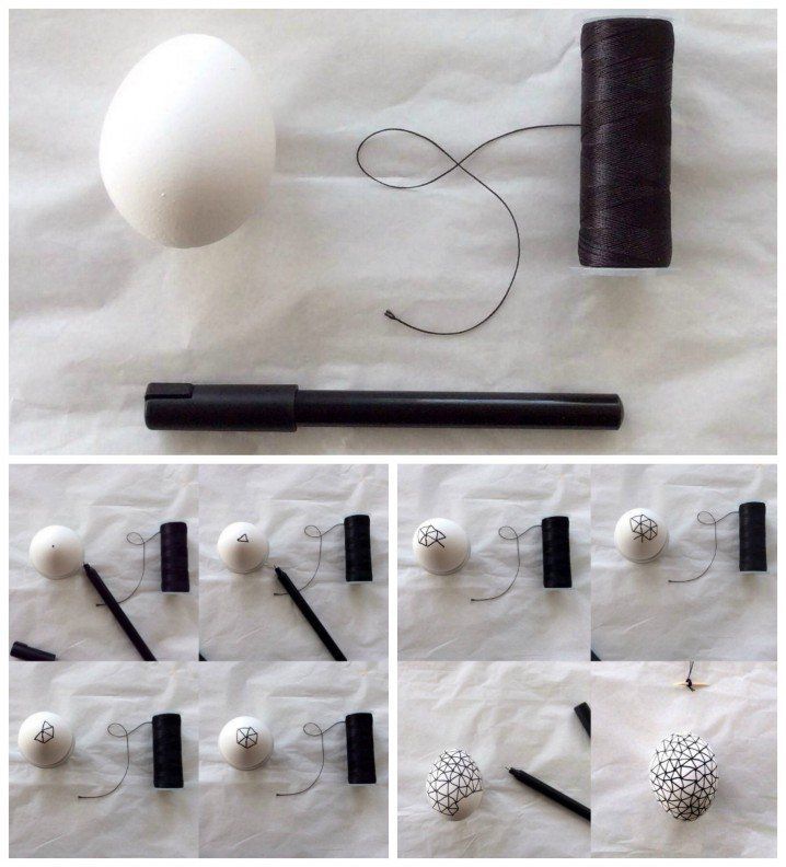 8.) Μαυρόασπρη διακόσμηση με μαρκαδόρο και κλωστή