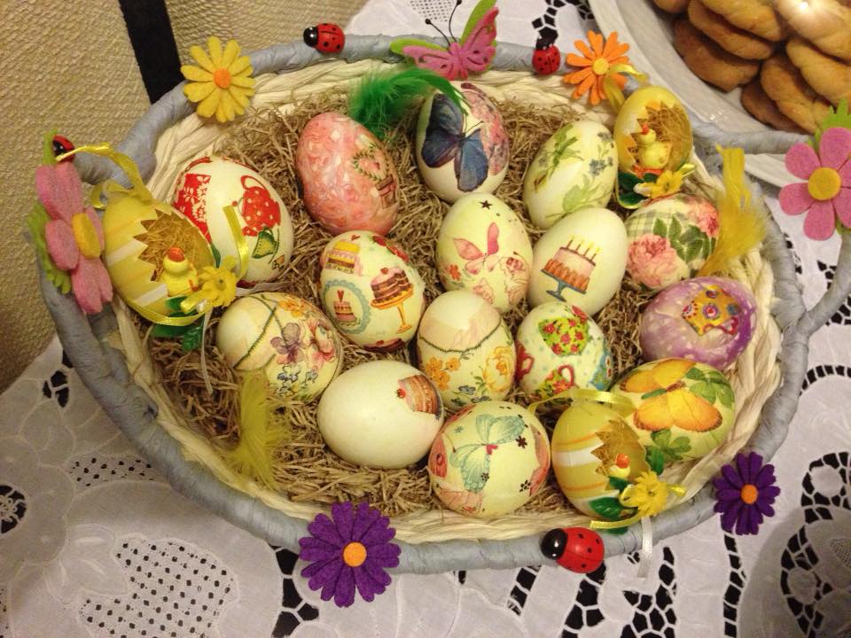 Αυγά στολισμένα με χαρτοπετσέτες απλά με ασπράδι αυγού. Υπέροχο αποτέλεσμα και κανένας κίνδυνος ζημιάς από χρώματα ή/και κόλλες.