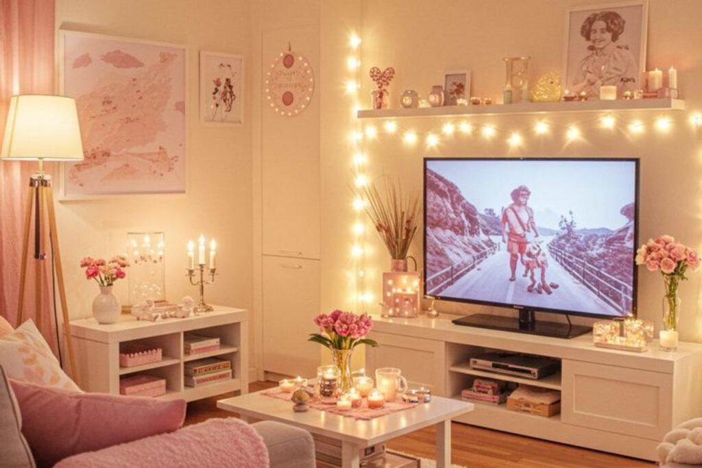 Τα φωτάκια led τα τελευταία χρόνια έχουν γίνει το απόλυτο must για κάθε σπίτι. Ειδικά οι νέοι τα χρησιμοποιούν συχνά για να κάνουν το σπίτι πιο ζεστό και ειδυλλιακό, ακόμη και μετά ή τα Χριστούγεννα. Μπορείς λοιπόν να συνδυάσεις μία ζεστή απόχρωση του ροζ όπως είναι η παρακάτω, με φωτάκια σε θερμές αποχρώσεις.