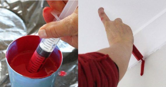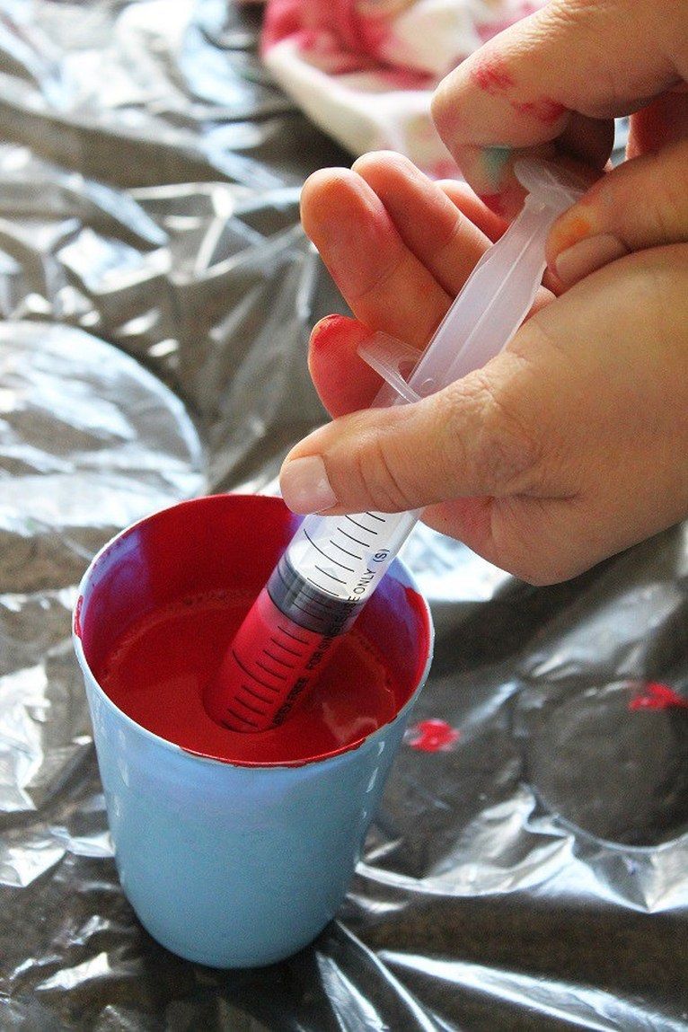 Ξεκινήστε τραβώντας μόνο 5 ml της βαφής με μία σύριγγα. Αυτό πρέπει να το κάνετε προκειμένου το χρώμα να αρχίζει να στάζει στον τοίχο, και όχι στο πάτωμα.