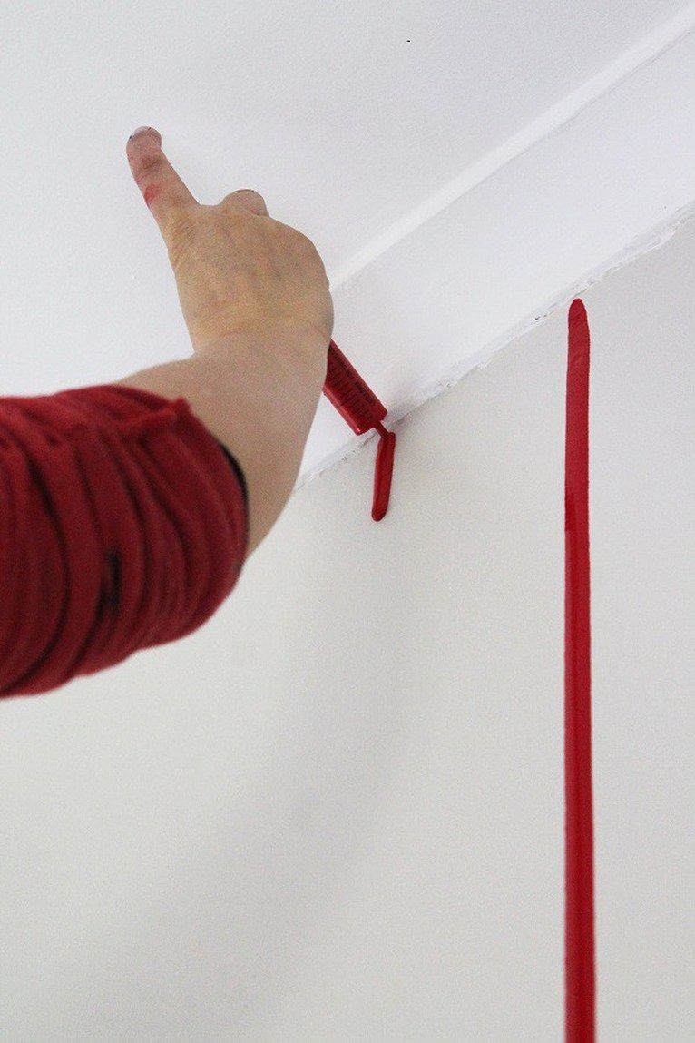 Κολλήστε τη μύτη της σύριγγας δεξιά στη γωνία, όπου ο τοίχος συναντά το γύψινο ή την οροφή, και στη συνέχεια, πιέστε αργά την σύριγγα προς τα κάτω ώστε να αφήσετε το χρώμα να στάξει κάτω.