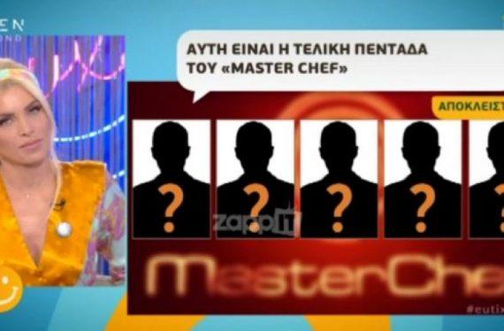 Ποιοι είναι οι πέντε παίκτες που φτάνουν πολύ κοντά στο όνειρο; Όσο πλησιάζει προς την ολοκλήρωσή του, το ενδιαφέρον για το MasterChef αυξάνεται, καθώς όλοι θέλουμε να δούμε ποιος θα αναδειχθεί νικητής. Τα γυρίσματα είναι αρκετά μπροστά, συγκριτικά με τα επεισόδια που βλέπουμε εμείς στις οθόνες μας. Έτσι, έχουν ξεκινήσει και οι διαρροές για το ποιοι παίκτες έχουν καταφέρει να μπουν στην τελική πεντάδα.