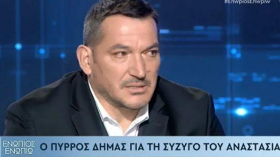 Ο Πύρρος Δήμας μίλησε στον Νίκο Χατζηνικολάου το βράδυ της 28ης Οκτωβρίου στην εκπομπή «Ενώπιος Ενωπίω». Ο Ολυμπιονίκης μίλησε για την Άρση Βαρών ,τα χρυσά μετάλλια αλλά και για την πολυαγαπημένη του σύζυγο Αναστασία η οποία έφυγε από την ζωή μετά από μεγάλη μάχη με τον καρκίνο