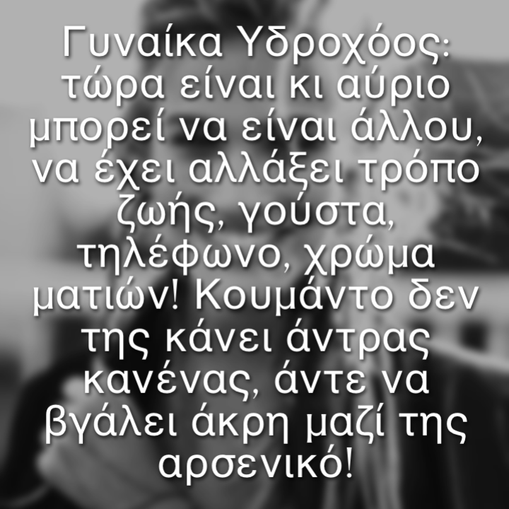 Γυναίκα Υδροχόος: επειδή η τρέλα είναι κολλητική κι επειδή μια ωραία τρέλα την κουβαλάει, ε την μεταδίδει άνετα στο αρσενικό που έχει δίπλα της, απλά γιατί είναι άπιαστη!